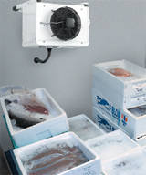 Die ideale Einbauvariante für Kühl- und Tiefkühlzellen. Der steckerfertige Einbaukältesatz (DF) lässt sich flexibel auf der Kühlzellendecke montieren und sorgt dann von oben für die richtige Raumtemperatur. Die Einbautiefe der Luftkühler beträgt bei Normalkühlung 100 mm und bei Tiefkühlung 120 mm. Die mitgelieferte Montageschablone erleichtert den Deckenausschnitt. Bei allen Deckeneinbauaggregaten (DF) erfolgt die Bedienung über die individuell montierbare Fernbedienung mit 5 m Anschlusskabel.